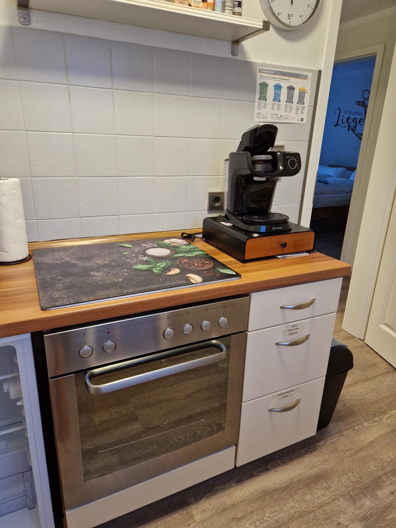 Die Küche ist klein aber fein und "Top" ausgestattet, so dass keine Wünsche offen bleiben. Die Mikrowelle und ein kleiner Gefrierschrank sind im Wohnzimmer integriert. Das große Schlafzimmer und das Wohnzimmer sind mit einem 50" und 55" Smart TV ausgestattet und sind mit Magenta TV eingerichtet. Beide Schlafzimmer verfügen über Verdunkelungsrollo und Fliegengitter.